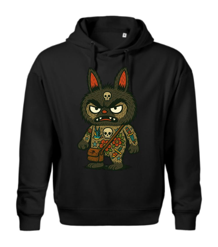 Tatubu Männer Hoodie – By Randy Engelhard 100% Baumwolle für maximalen Tragekomfort. Das Design zeigt den tätowierten Tatubu auf der Vorderseite und einem großen Schriftzug auf dem Rücken. Ein Mix aus Tattoo-Art und Streetstyle – stark im Look, angenehm im Alltag.
